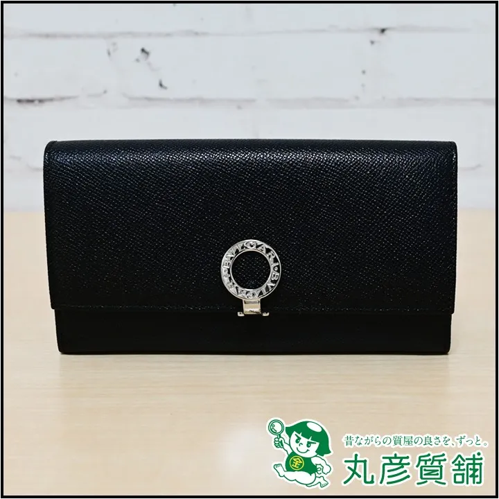 ブルガリの時計でも人気となっている、BVLGARI・BVLGARIのクリップが目を引くデザインです。耐久性と強度を併せ持つ、ブラックのグレインレザーを使用しているため見た目にも高級感があります。内側には鮮やかなブルーのライナーが採用されている事で小銭やカードなどが見つけやすく、デザイン性だけではなく実用面でも使いやすい財布となっています。