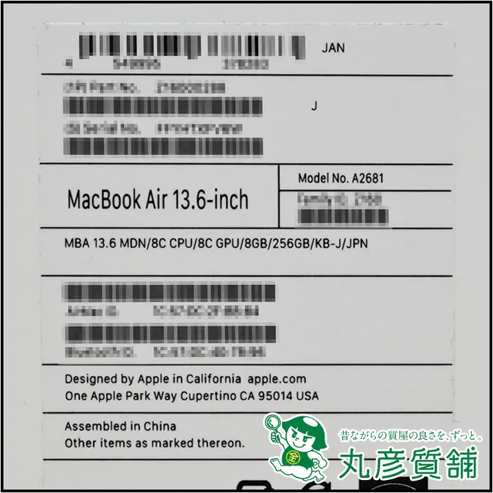 2022年7月15日の発売から、今なお人気モデルとなっているAppleのMacBook Airの質預かりや買取させて頂く場合のお取り扱い価格は9万円~6万円くらいとなります。(こちらの買取価格は2025年4月のお見積もり金額です。相場は常に変動しており、その時点での最高値を目標に査定させて頂きます。)こちらの電化製品は兵庫県尼崎市にお住まいのお客様からお買取りさせて頂きました。