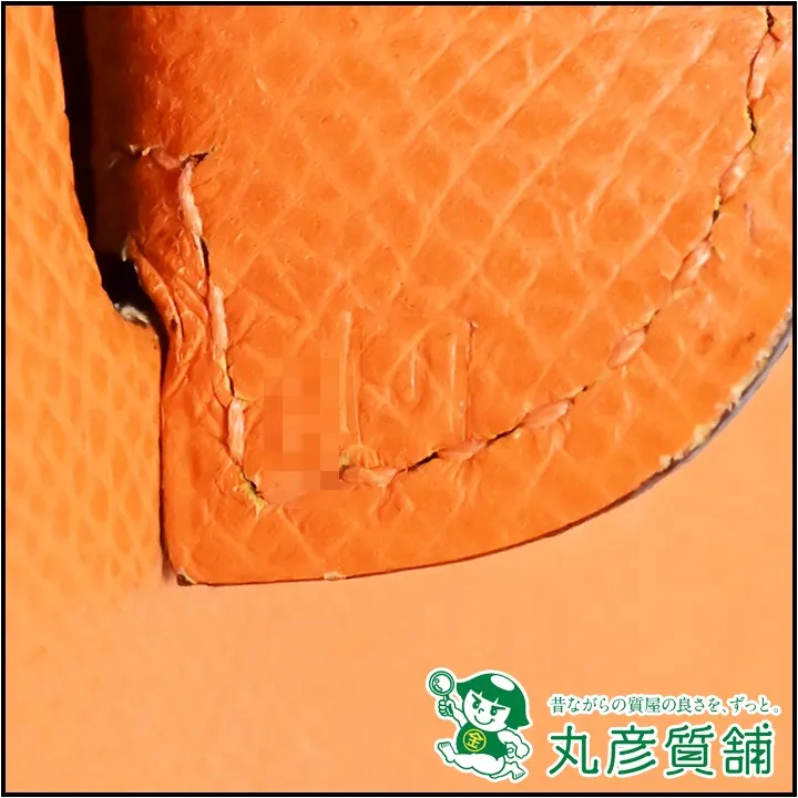 素材のエプソンは仔牛の革に細かい型押しを施したレザーで、軽量でキズが付きにくく耐水性も高いことから普段使いにも使いやすい素材です。お持ち込み頂いたお客様も気に入っておられたようで、バッグの角には擦れたあとが見受けられます。それでもエルメスらしいオレンジ色が美しいバッグですので、質預かりや買取させて頂く場合のお取り扱い価格は20万円~18万円くらいとなります。(こちらの買取価格は2025年4月のお見積もり金額です。相場は常に変動しており、その時点での最高値を目標に査定させて頂きます。)こちらのブランドバッグは兵庫県尼崎市にお住まいのお客様からお買取りさせて頂きました。