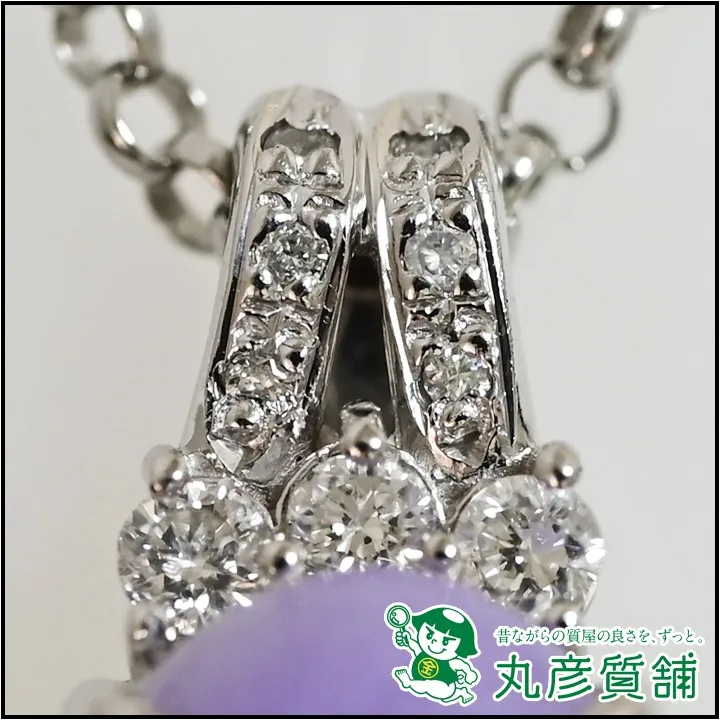 ひすいの中でも珍しいラベンダーひすいに、美しくデザインされたダイヤモンドが魅力的なネックレスですので、質預かりや買取させて頂く場合のお取り扱い価格は6万円~5万円くらいとなります。(こちらの買取価格は2025年5月のお見積もり金額です。相場は常に変動しており、その時点での最高値を目標に査定させて頂きます。)こちらのジュエリーは兵庫県尼崎市にお住まいのお客様からお買取りさせて頂きました。