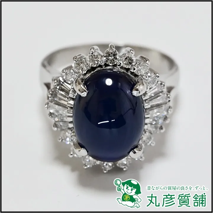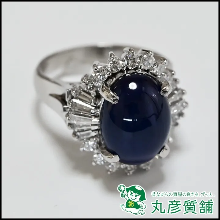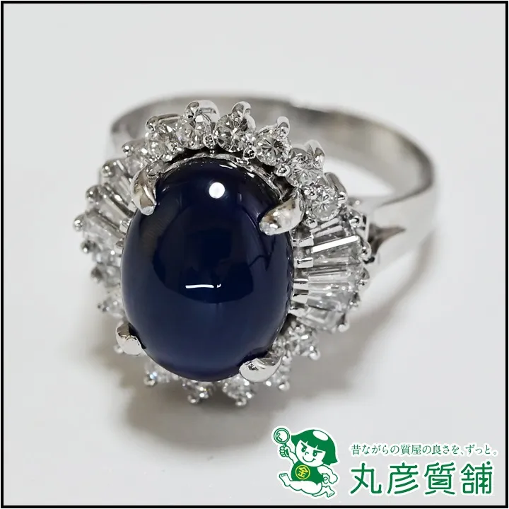 指輪 Pt900 サファイア8.5ct カボッション ダイヤモンド0.8ct